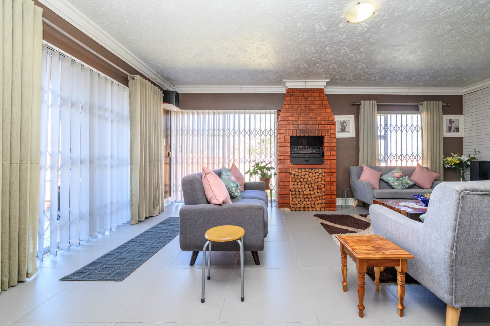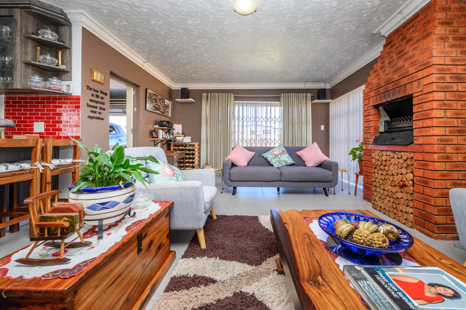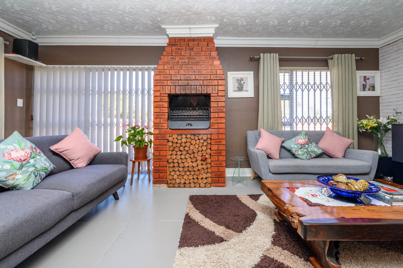 Inside, the home boasts a spacious lounge with a built-in braai and two sliding doors that open onto a cozy patio, creating an ideal indoor–outdoor entertainment flow. All doors and windows are fitted with Trellidor security and aluminum frames, ensuring safety and peace of mind without compromising on aesthetic appeal. Daylight streams through multiple windows throughout the home, giving every room a bright and welcoming atmosphere. The separate dining room adds versatility and can also be used as a private office for work-from-home convenience.