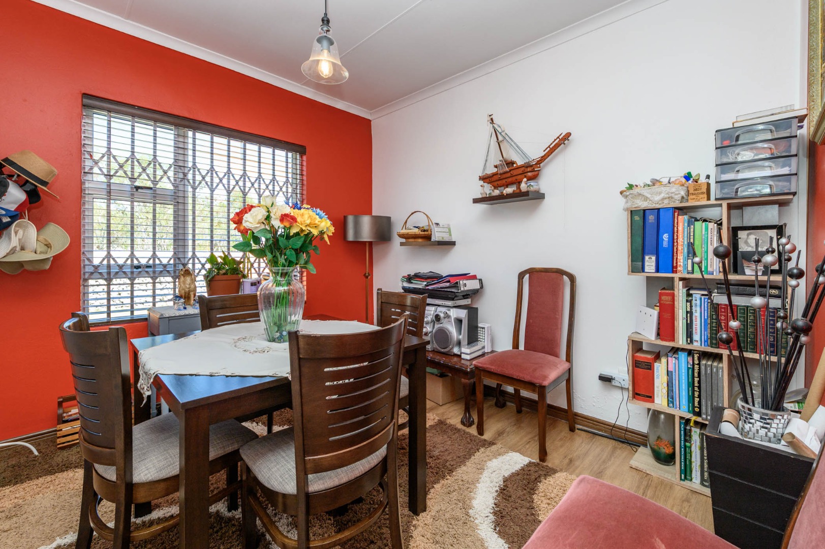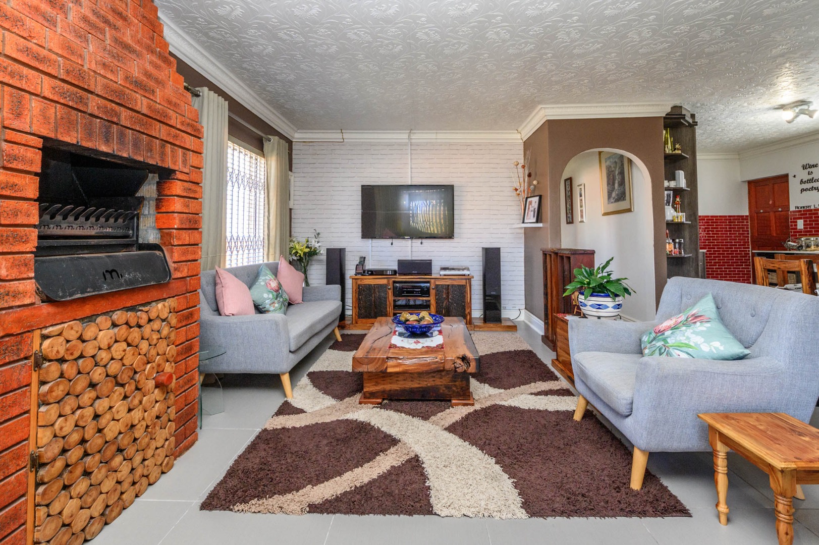 Inside, the home boasts a spacious lounge with a built-in braai and two sliding doors that open onto a cozy patio, creating an ideal indoor–outdoor entertainment flow. All doors and windows are fitted with Trellidor security and aluminum frames, ensuring safety and peace of mind without compromising on aesthetic appeal. Daylight streams through multiple windows throughout the home, giving every room a bright and welcoming atmosphere. The separate dining room adds versatility and can also be used as a private office for work-from-home convenience.
