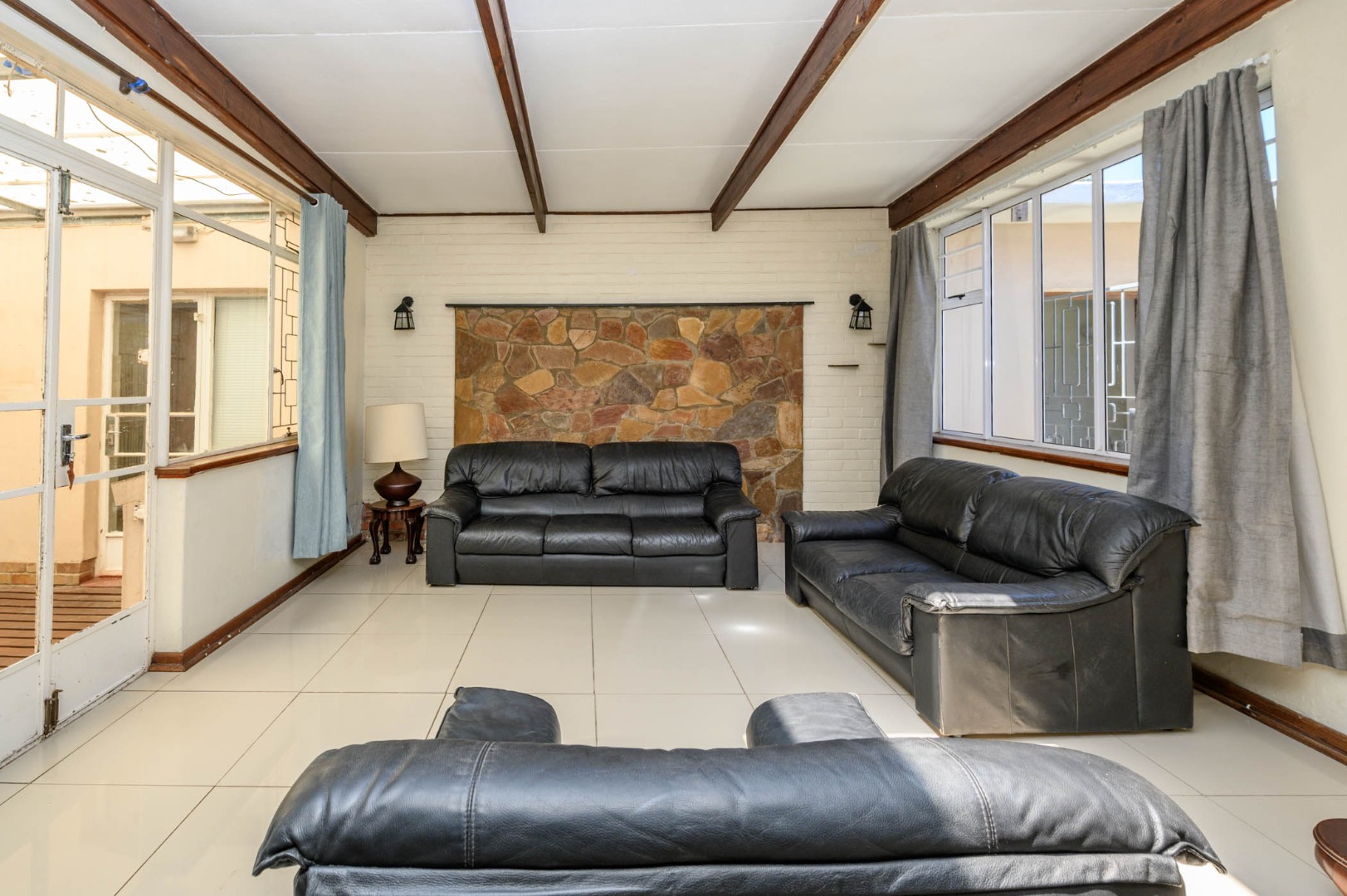 The main dwelling features three well-proportioned bedrooms and two bathrooms, providing ample space for family living. The interior boasts a functional layout, including a dedicated kitchen, a dining room ideal for shared meals, and two spacious lounges that offer flexible areas for relaxation and entertainment. With a generous an erf of 793 sqm, this property provides substantial living space.